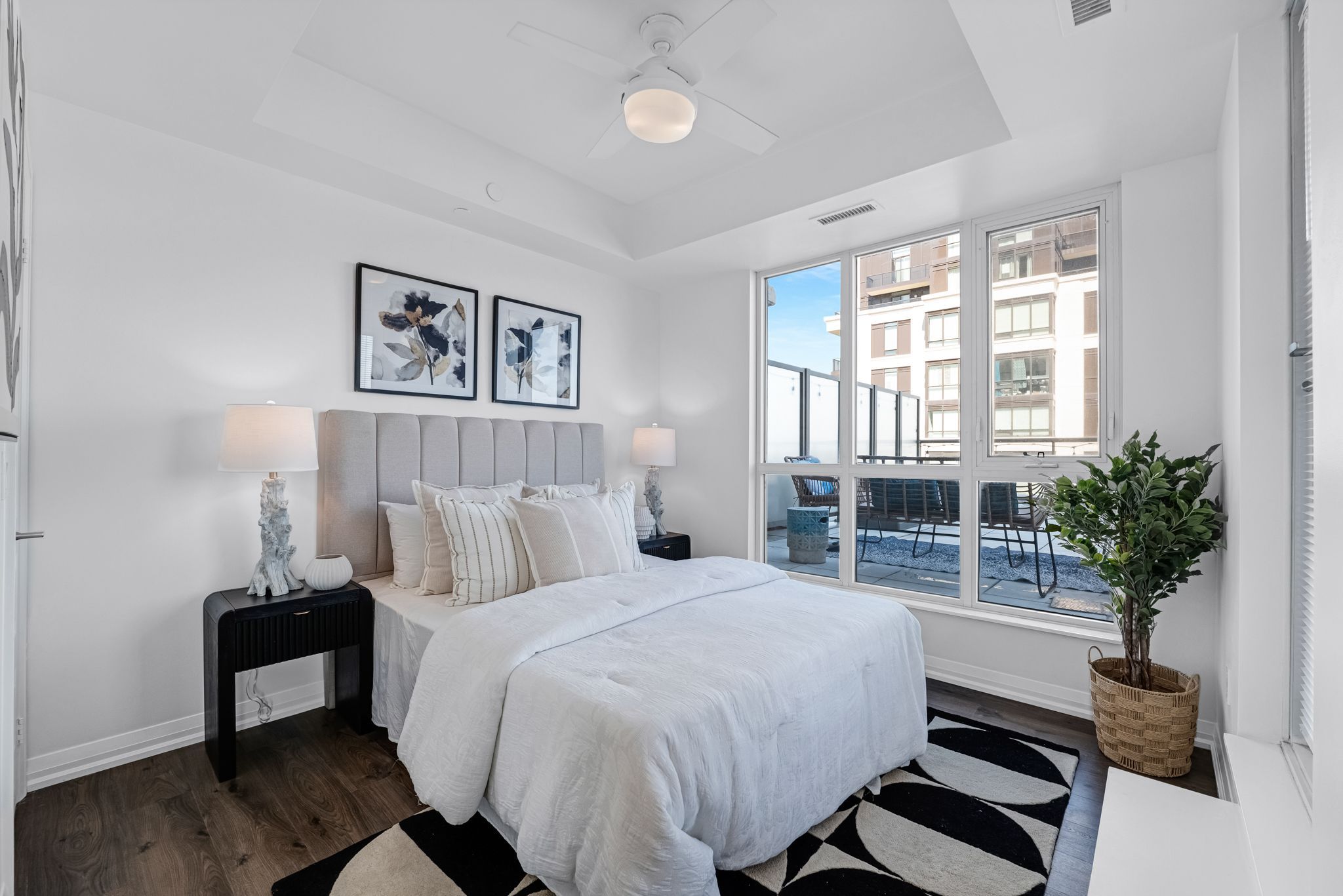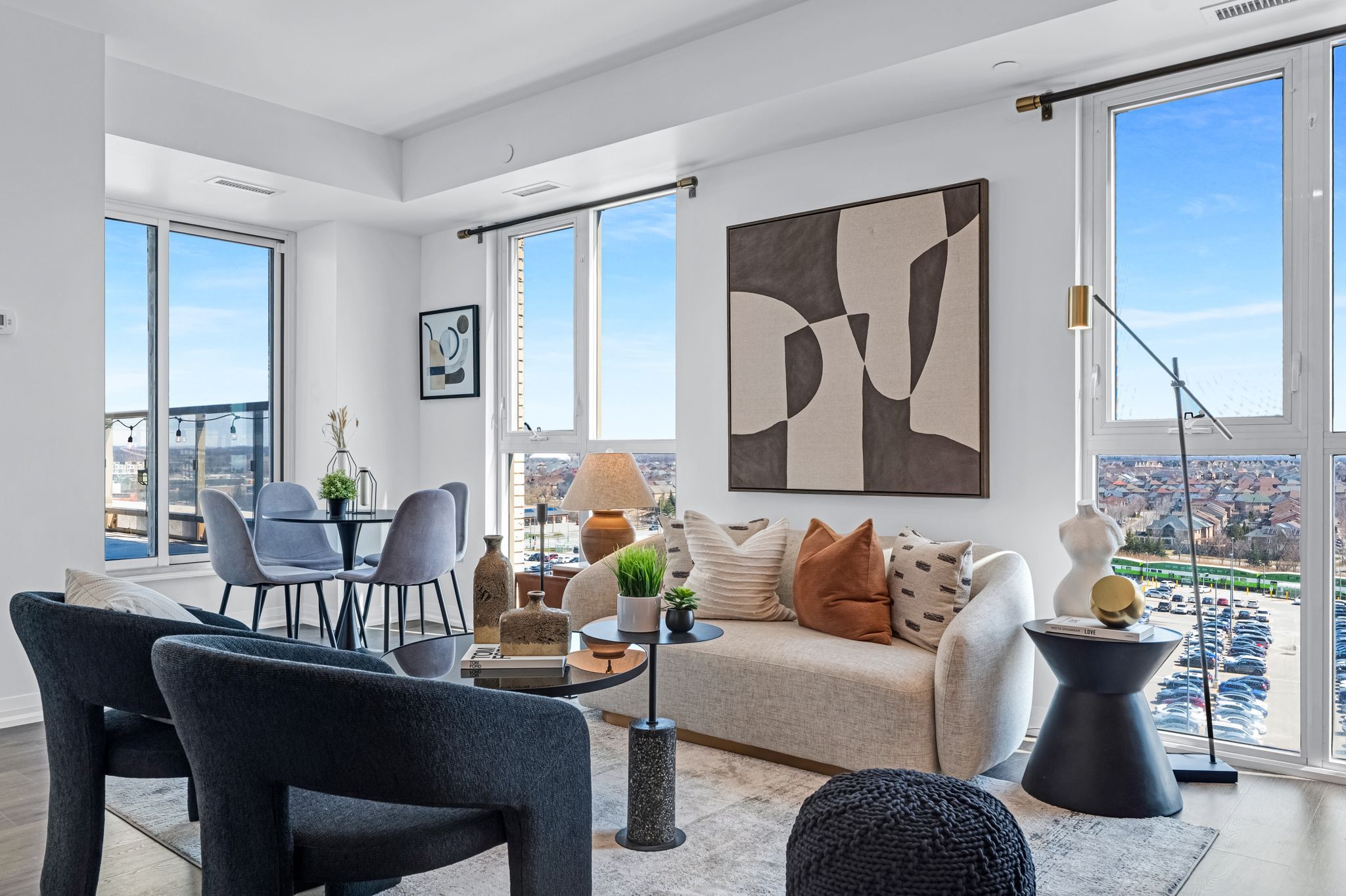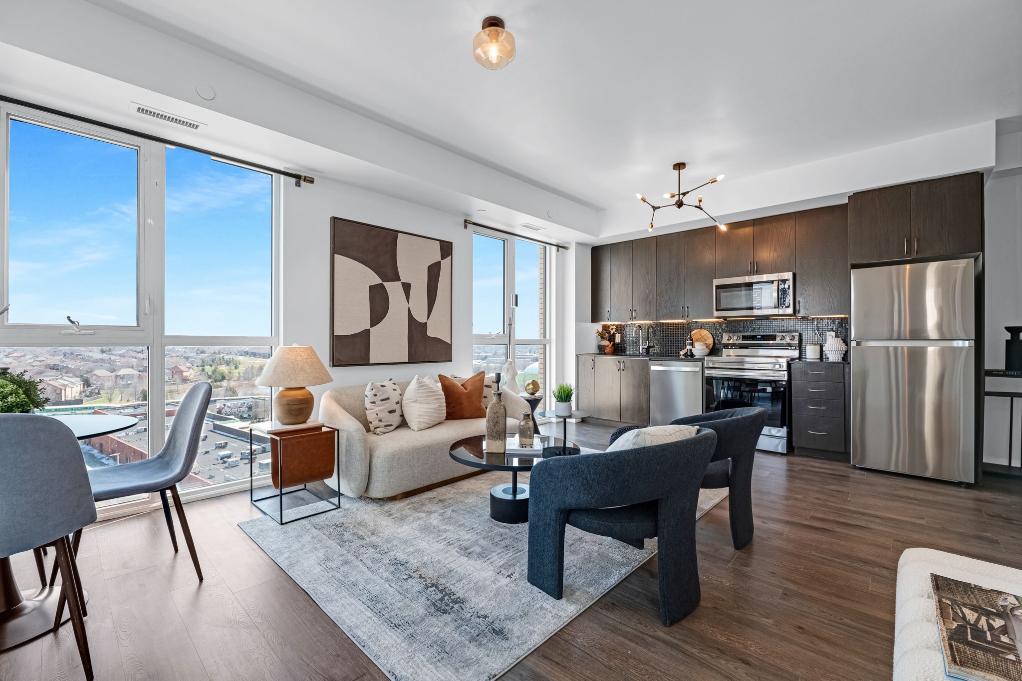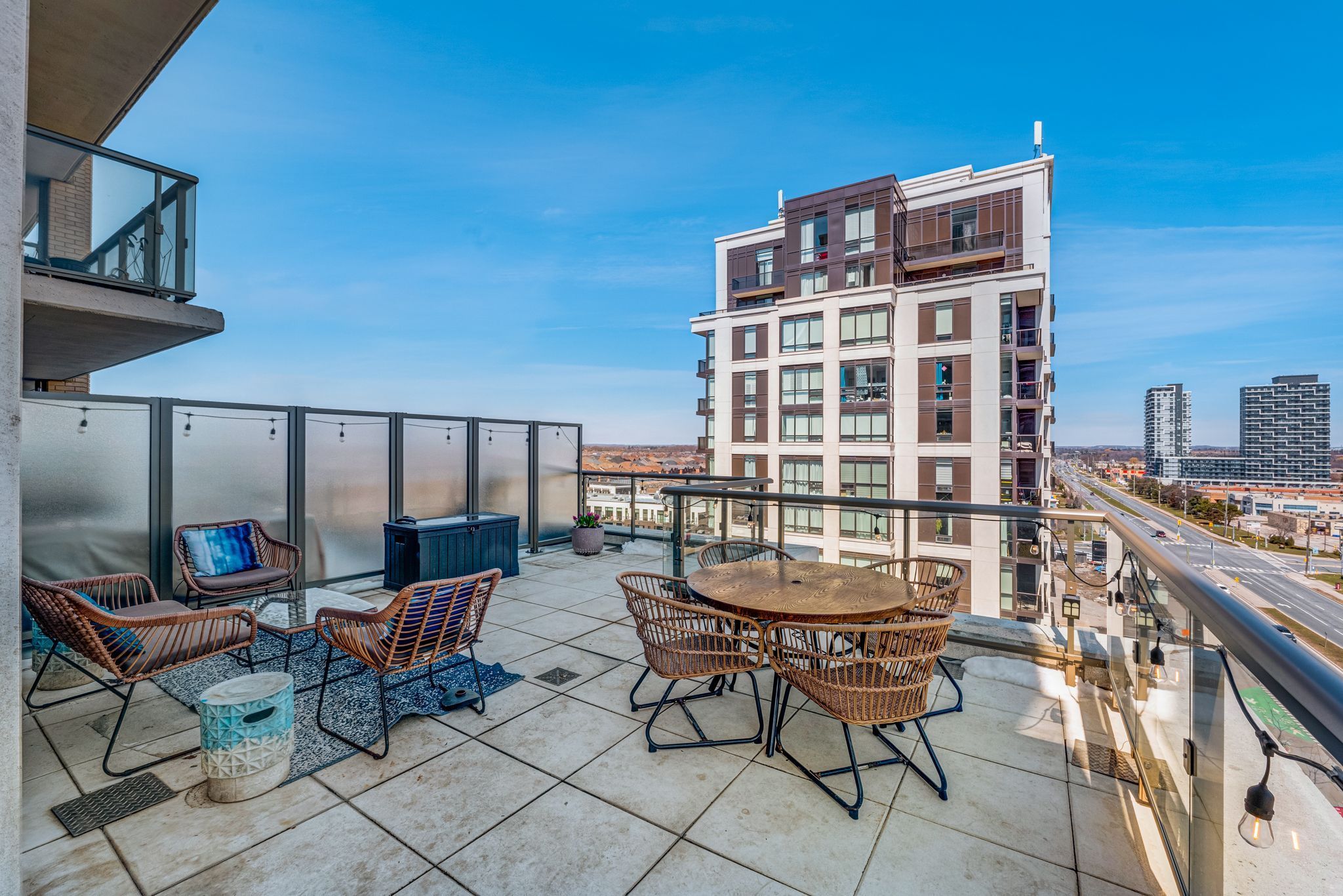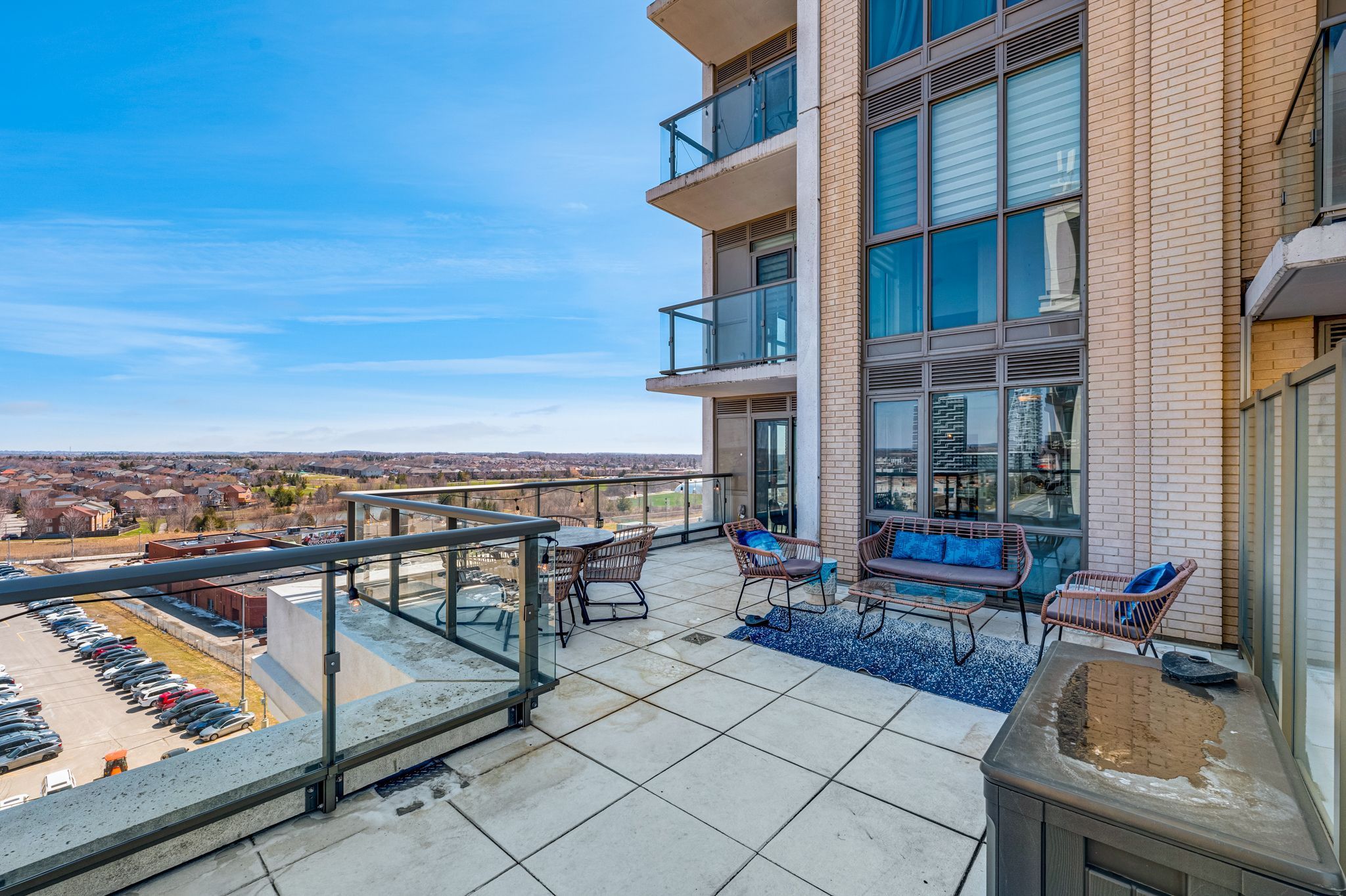 Welcome to this beautifully updated 1+1 bedroom corner suite located in the highly regarded building known as "The Mark" -a one-of-a-kind opportunity offering style, space and outstanding value in one of Markham's most convenient & vibrant communities. This exceptional corner unit features 9ft ceilings, an open-concept layout and is flooded with natural light through expansive floor-to-ceiling windows! Thoughtfully refreshed with brand new flooring and a fresh coat of paint, this space is move-in ready! The suite is equipped with full-sized appliances, ensuite laundry and a versatile den which provides the perfect space for a home office, reading nook or added storage! A true standout feature is the incredibly rare additional 441 sq.ft. private terrace (considered a "common element" so does not impact monthly maintenance fees/property taxes) - an outdoor space seldom found in traditional condo living! Whether you're hosting, have furry friends (pets permitted) or enjoy quiet mornings, this expansive terrace offers endless possibilities. With electric BBQs permitted you can truly make the most of this unique extension of your living space! Residents of The Mark enjoy access to an impressive array of building amenities including 24/7 concierge, fully equipped fitness centre, games room, party room, stylish lounge area, rooftop terrace with BBQs, a convenient pet wash station, guest suites, car wash and more - providing both comfort and peace of mind in a well-managed building! Ideally located, this home is just steps to shopping, dining, grocery stores, parks, and transit options. The GO Station is located right beside the building making commuting incredibly convenient and seamless. This excellent unit also includes an owned parking space located right outside the entry door and an owned locker for additional storage. This unbeatable combination of location, layout, premium features, and rare outdoor space makes this home a fantastic opportunity for any buyer!