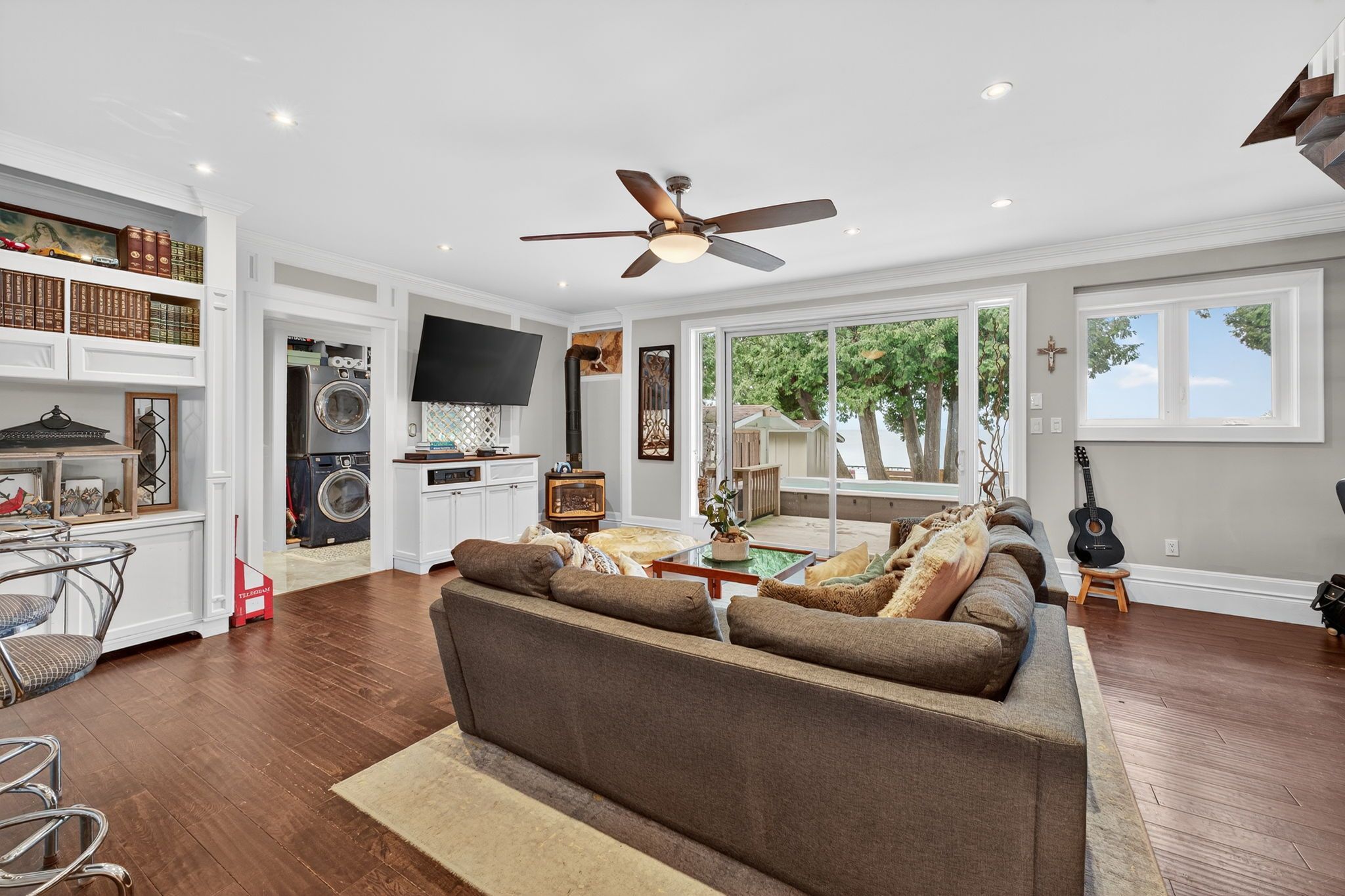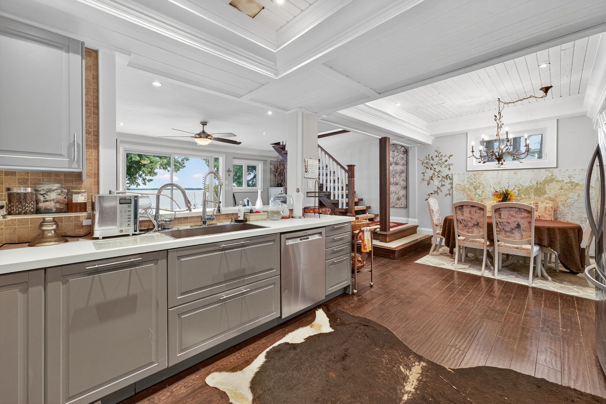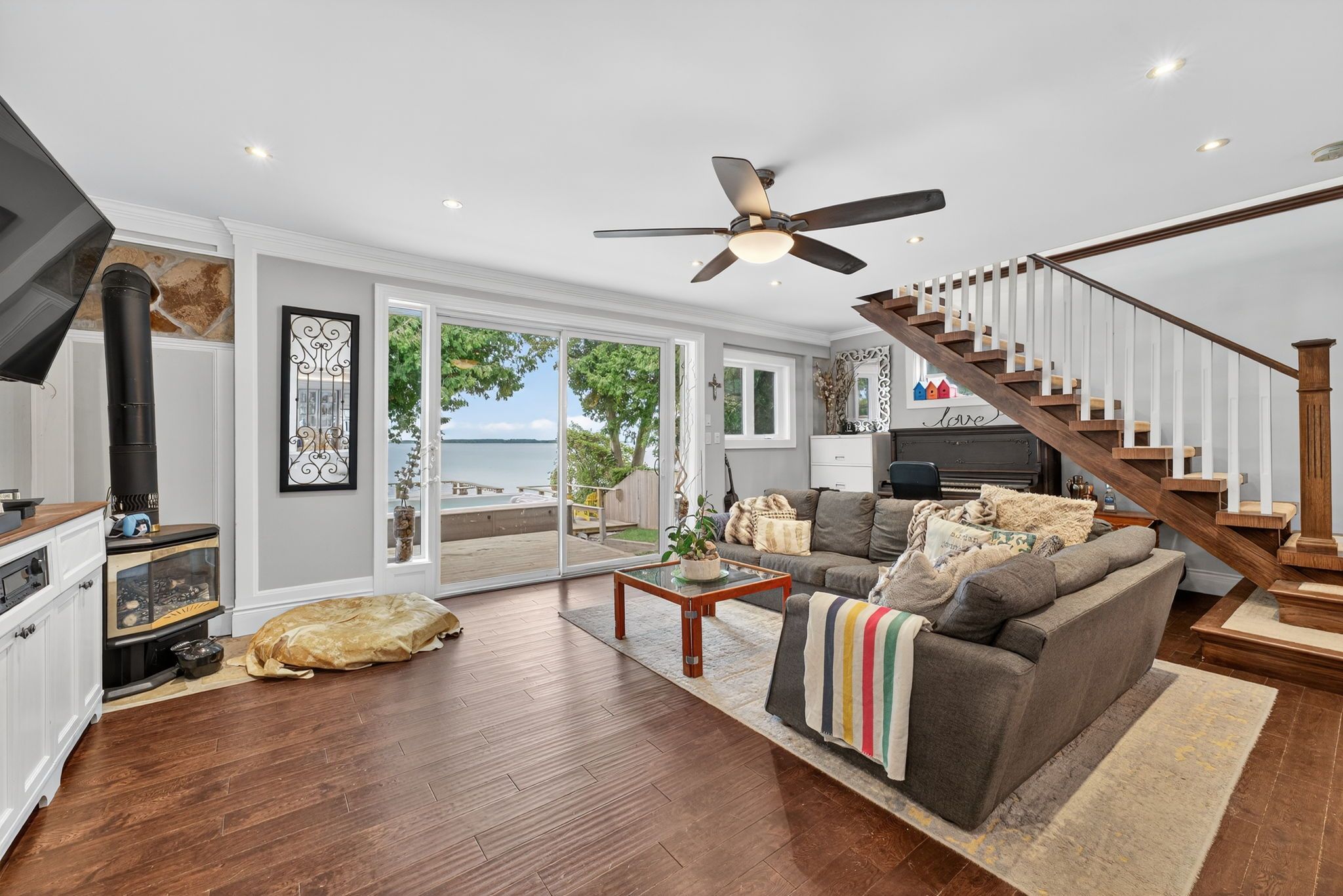 Located on the Calm Shores of Lake Simcoe, This Stunning Turnkey Home Offers 3 Bedrooms & 2 Full Baths, Thoughtfully Renovated w/ Many Modern Finishes! Enter Into Your Fully Fenced Yard w/ Private Lawns, Garage & Shed, Oversized Front Deck Perfect for Morning Coffee & Sunrises! Spacious Main Foyer, Cedared Ceiling Living Room w/ Gas Fireplace & Large Windows! Chef's Kitchen Overlooks Stunning Lake Simcoe & Open Concept Family/Dining Room, Quartz Counters, Crown Moldings, S/S Appliances, Pull-outs and More! Main Floor Laundry w/ Access to Backyard & 3 pc. Bath. Floating Staircase Invites You to 2nd Floor Serenity w/ Oversized Primary Floor! Features Private Deck & Sitting Room, Bonus Nursery/or Soon to be Walk-in Closet w/ Incredible 6pc. Ensuite w/ Double Sinks, Stand Alone Tub & Shower, Bidet & More! Backyard is a Complete Masterpiece w/ Custom Deckings, Swim Spa w/Built-in Swim-up Bar, Sep. Sauna, Treed 2 Tiered Deck w/ Stairs Down to Beach & 100ft. Dock w/ Large Patio & Slide, Sandy Walkout & Great Fishing! Custom Exterior Lighting Sets The Evening Ambiance, While Enjoying Daily Sunsets Over the Lake! Loads of Upgrades & Custom Finishes! Close to Town, School, Shopping, Restaurants & More!